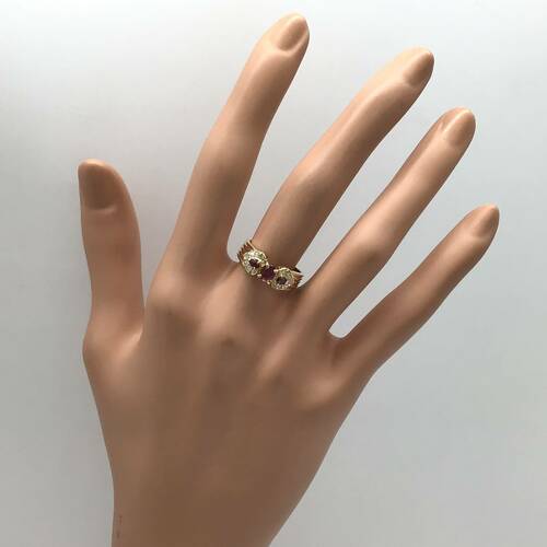 7月誕生石のルビーの赤色がポイントの可愛らしいリングです。