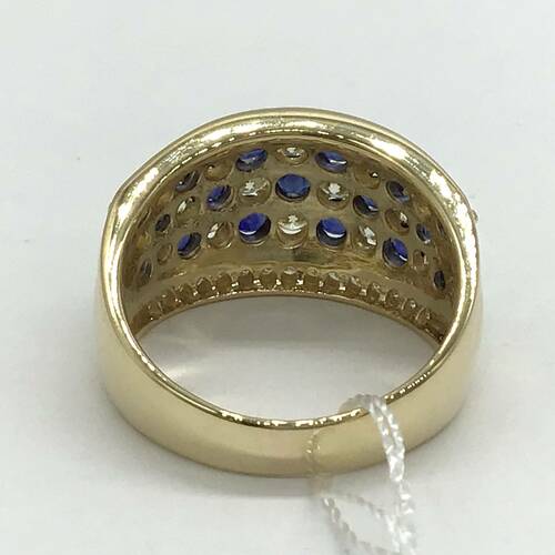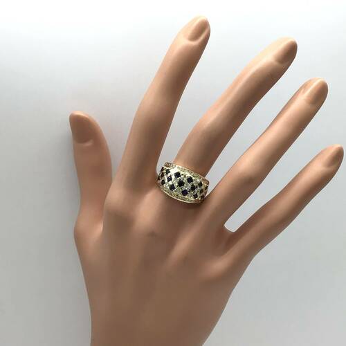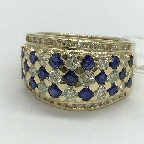9月誕生石のサファイアとダイヤモンドが格子状に施された豪華でおしゃれなリングです。