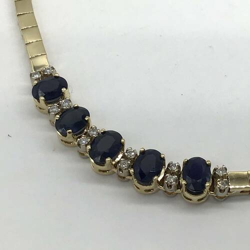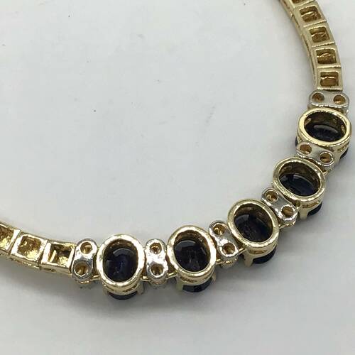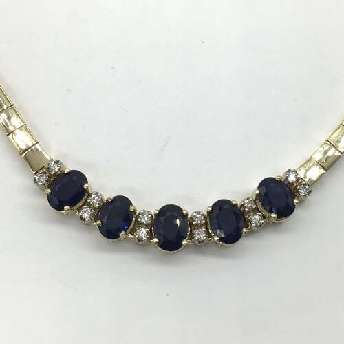 9月誕生石の大粒のサファイアが5石と存在感のあるチェーンが豪華なネックレスです。