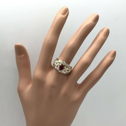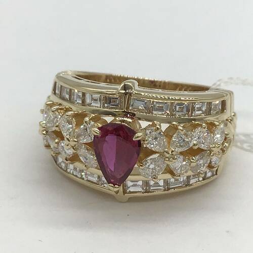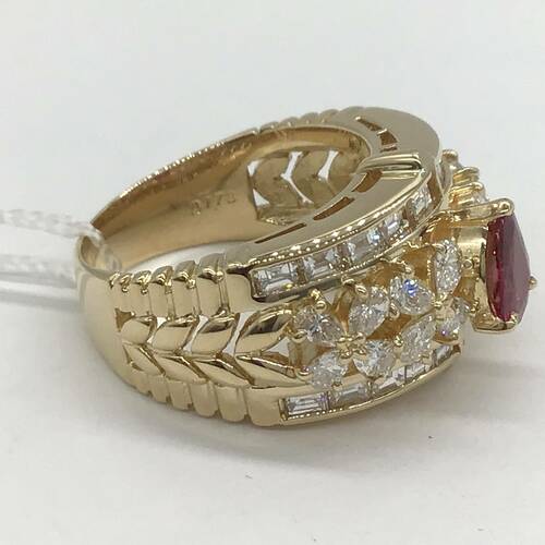 7月誕生石のルビーと1.73キャラットもダイヤモンドの輝きが美しいリングです。