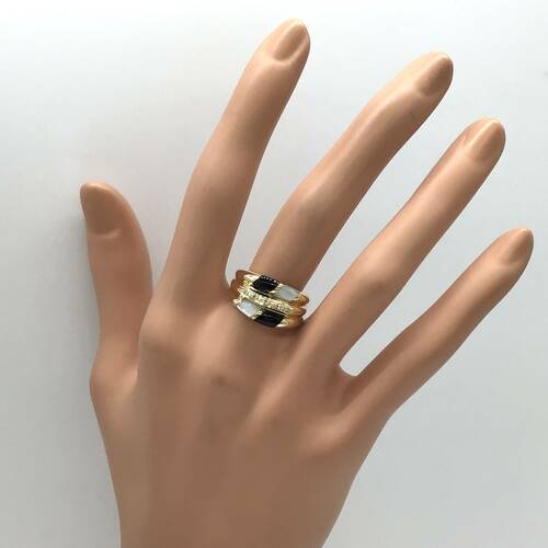 オニキスの黒とシェルの白のモノトーンがおしゃれなリングです。