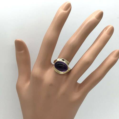 2月誕生石のアメジストはガラスのような繊細な光沢を持ち、美しい紫色が魅力です。大きなアメジストが存在感があるリングです。