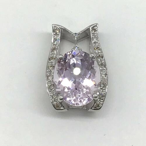 | コメント | 9月誕生石のクンツァイトはピンク色からライラック色の美しい宝石です。見る角度によって色の濃淡が変わる多色性持つのが特徴です6.14キャラットの豪華なペンダントトップです。 |