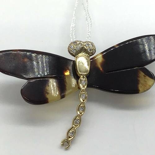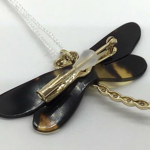 | コメント | トンボがモチーフのブローチです。お持ちのチェーンを使ってペンダントトップとしても楽しめます。琥珀は太古の樹木が分泌した樹液が地中に埋もれ、化石化してできた樹脂の宝石です。 |