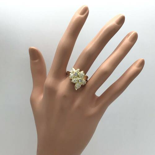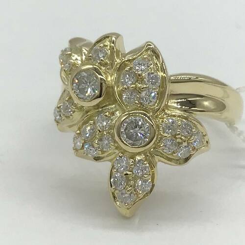 2輪の花びらにダイヤモンドが敷き詰められた豪華であり可愛らしいリングです。