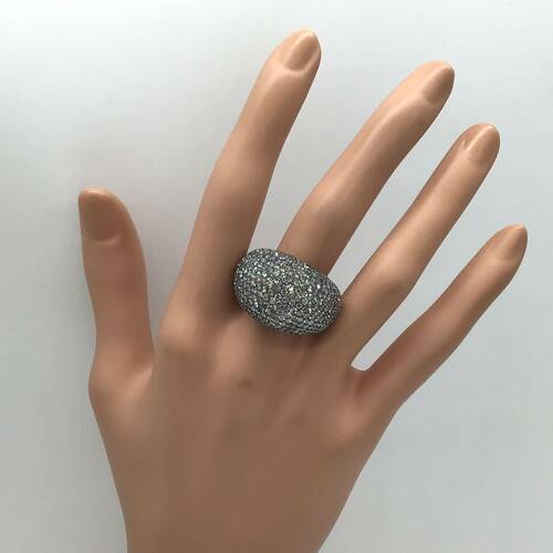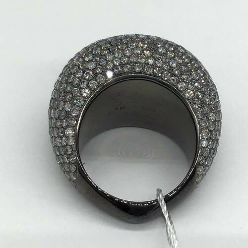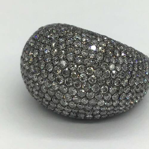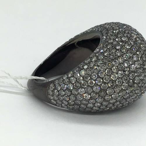 ブラックゴールドに7.68キャラットのダイヤモンドが敷き詰められたボリュームのある豪華なリングです。