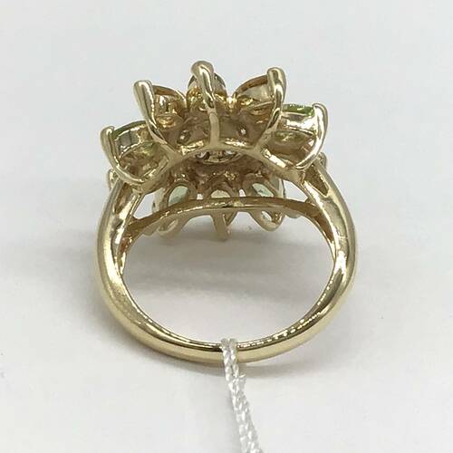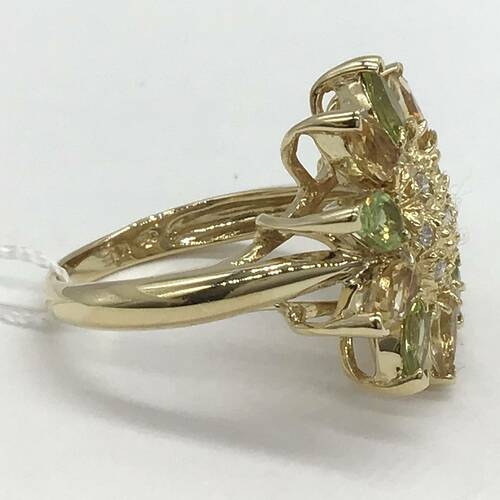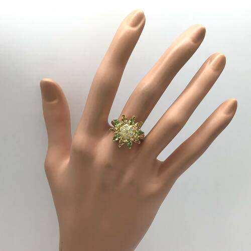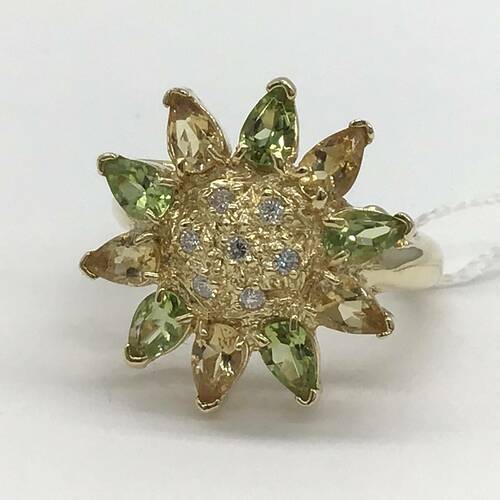 ペリドットとシトリンがひまわりの花のようなデザインが可愛らしいリングです。
