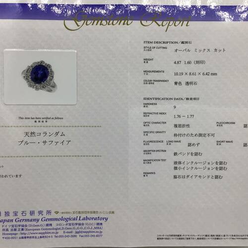 PTリング[JGGL] サファイア4.87/D1.60 #12