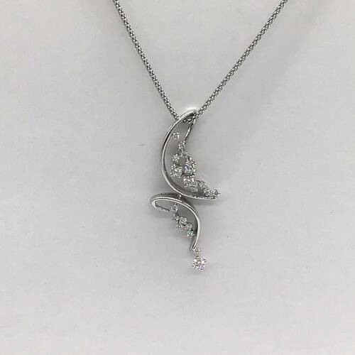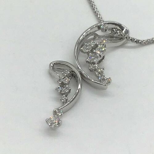 曲線とダイヤモンドの輝きが美しいネックレスです。スライドアジャスターにより長さ調整が可能。