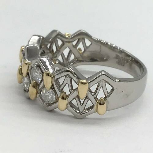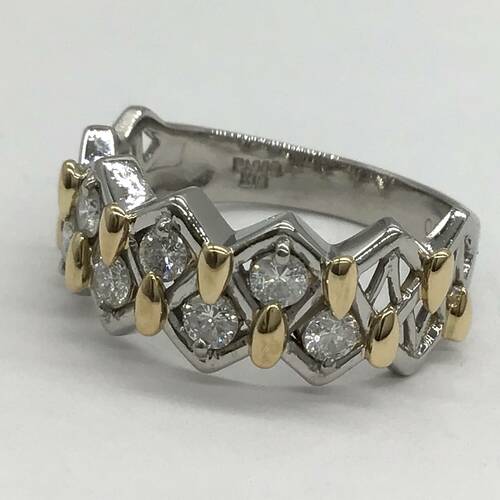 プラチナに所々ゴールドが施されたおしゃれなリングです。