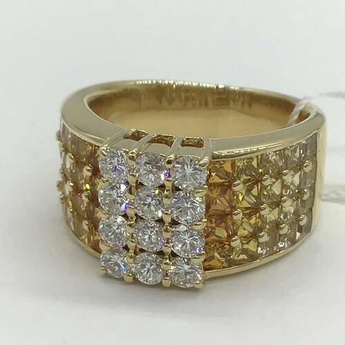 9月誕生石のサファイアはカラーバリエーションが豊富です。黄色〜オレンジのグラデーションが綺麗なリングです。