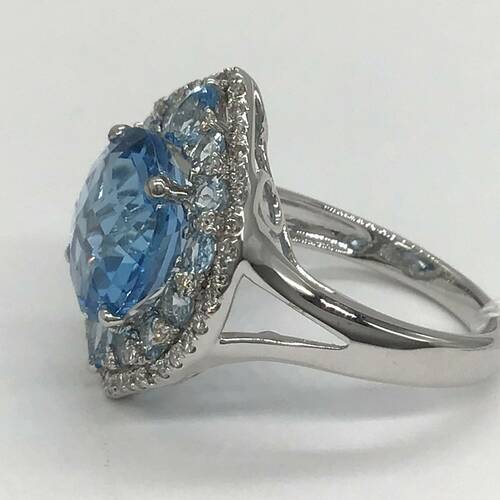 11月誕生石のトパーズはカラーバリエーションが豊富です。その中でもブルートパーズは水面に反射する光のようにキラキラと美しいリングです。