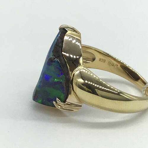 | コメント | 10月誕生石のオパールは虹のような遊色効果が美しく、角度や光の当たり方で異なる表情を見せる幻想的な宝石です。その中でもボルダーオパールは「岩の塊」という意味で裏側が黒っぽく母岩がついた状態です。 |