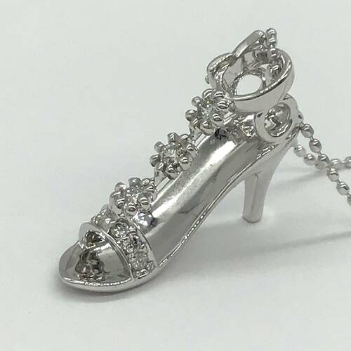 ハイヒールのサンダルがモチーフの可愛らしいネックレスです。スライドアジャスターにより長さ調整が可能。