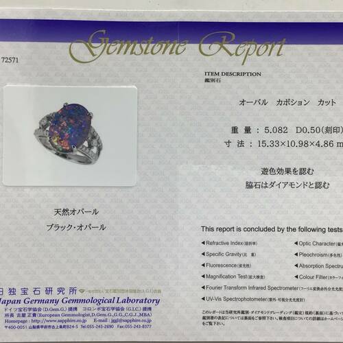 | コメント | 10月誕生石のオパールは遊色効果が美しく、角度や光の当たり方で異なる表情を見せる幻想的な宝石です。その中でもブラックオパールは不透明な濃い灰色から黒色を地色として様々な色彩の輝きをみせます。鑑別書付き。 |