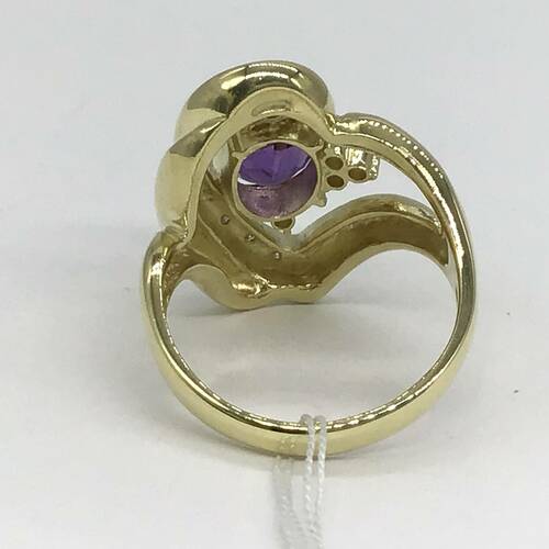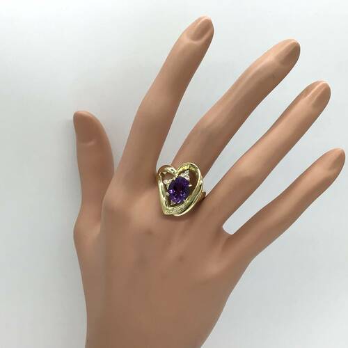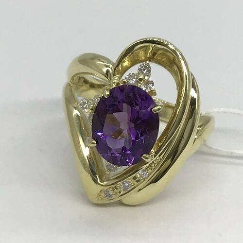 2月誕生石のアメジストはガラスのような繊細な光沢を持ち、美しい紫色が魅力です。 ハートの中に大きなアメジストがおしゃれなリングです。
