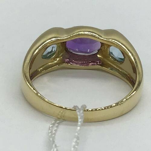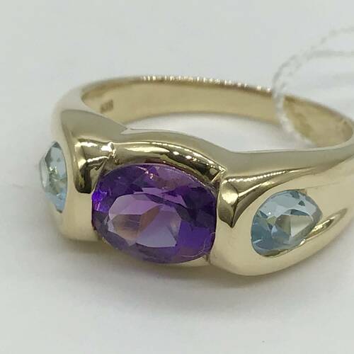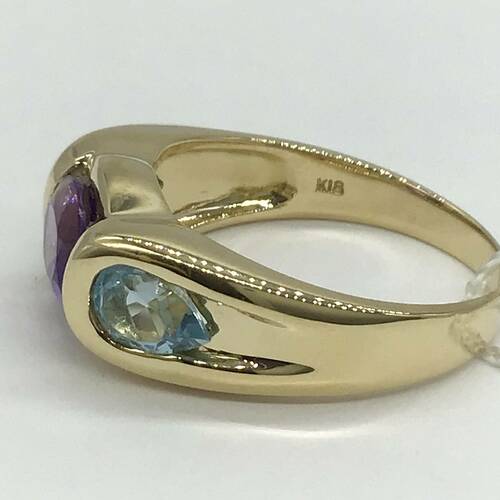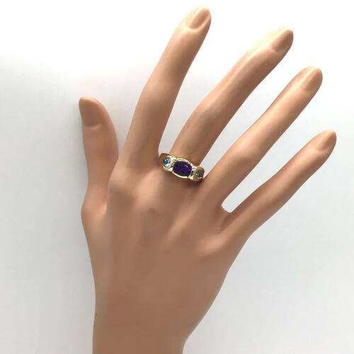 2月誕生石のアメジストとブルートパーズが施されたおしゃれなリングです。