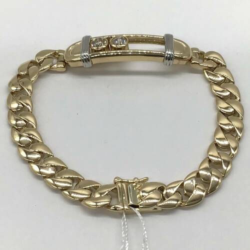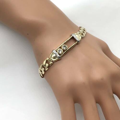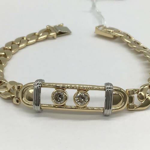 太めのチェーンに2石のダイヤモンドが豪華なブレスレットです。ダイヤモンドは横にスライドするので動く度にキラキラと輝くさまが美しいです。