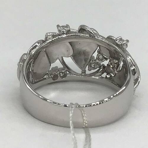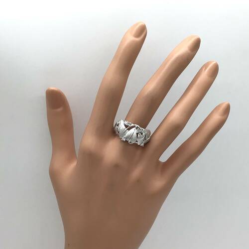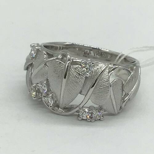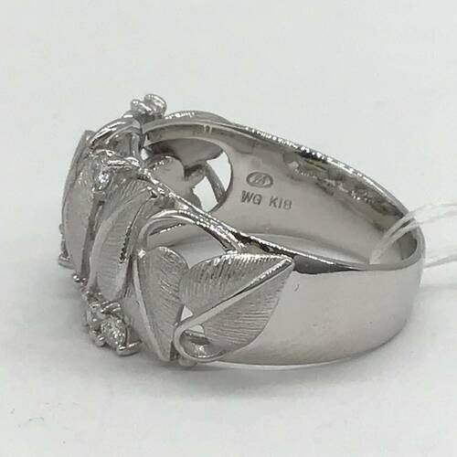 幾つかの葉っぱが彫られ、その隙間にダイヤモンドが施されたおしゃれなリングです。