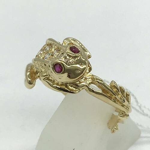| コメント | 蛙がモチーフの可愛らしいリングです。蛙は「無事に帰る」「お金が帰る」など語呂合わせと、前にぴょ~んと飛ぶ姿から仕事運UP、たくさん卵を産むことから子宝運UPなど縁起物とされています。 |