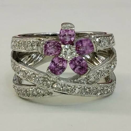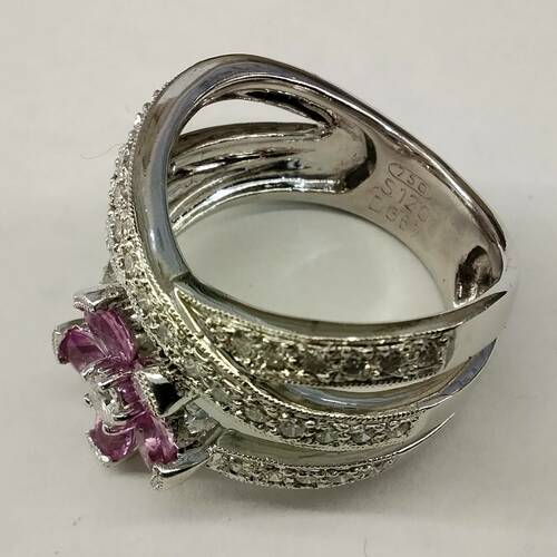 華やかなピンクサファイアとダイヤモンドのリング サイズ15です