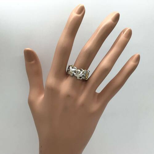 ボタニカルなデザインにゴールドとダイヤモンドの輝きが素敵なリングです。