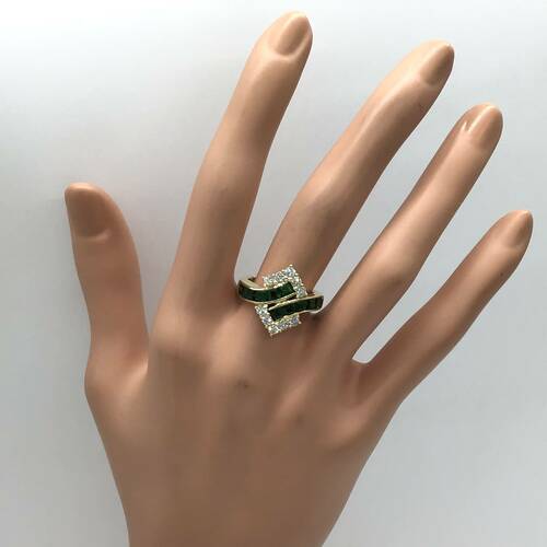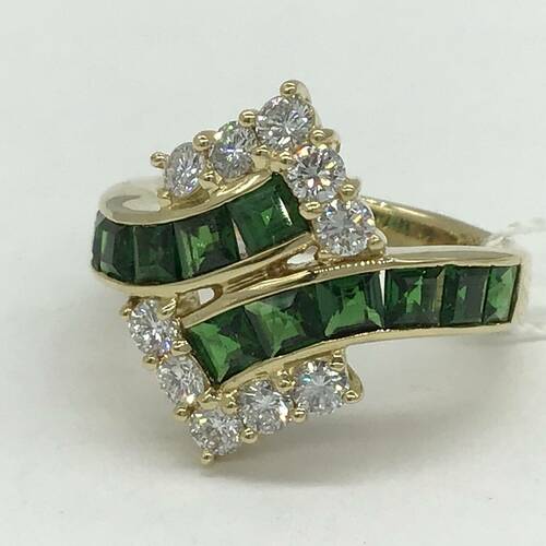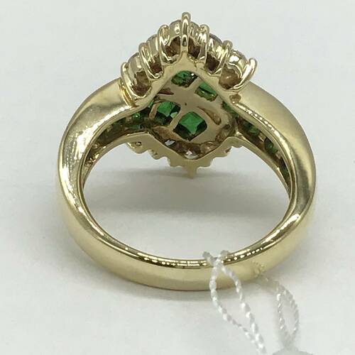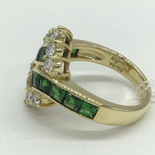 1月誕生石のガーネットは赤色のイメージがありますが、グリーンもとても綺麗な宝石です。ダイヤモンドの輝きと共に豪華なリングです。