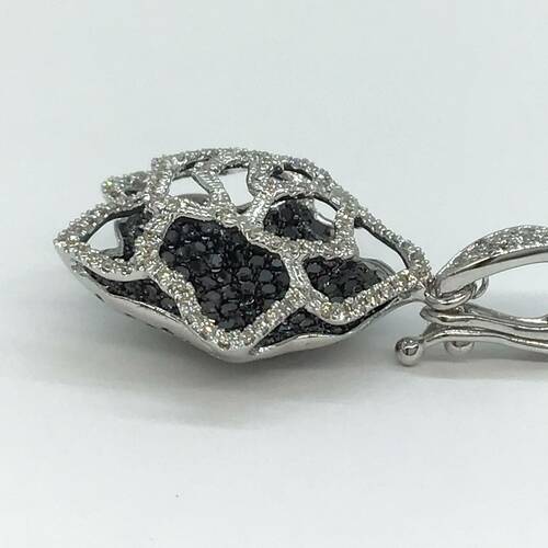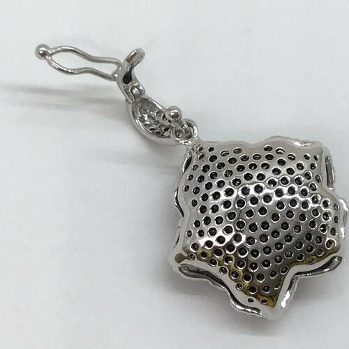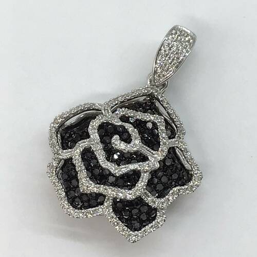 バックにブラックダイヤモンドが敷き詰められたカメリアのペンダントトップです。