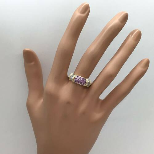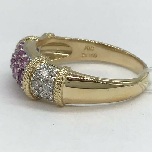 9月誕生石のサファイアはカラーバリエーションが豊富です。ピンクサファイアが豪華さの中に可愛らしい表情を見せています。