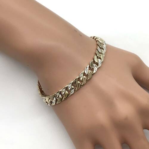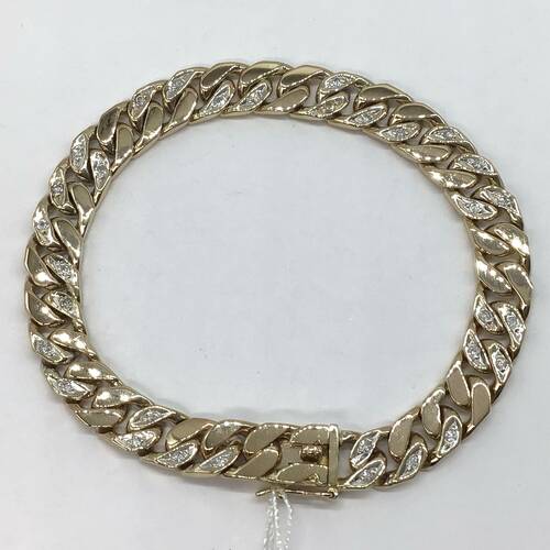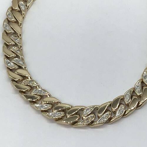 太めの喜平に所々ダイヤモンドが施された重量感のある豪華なブレスレットです。