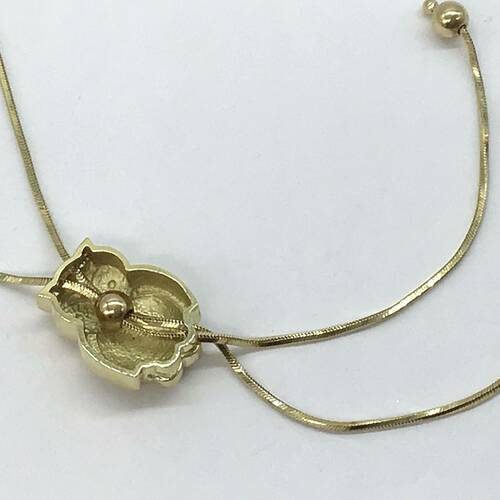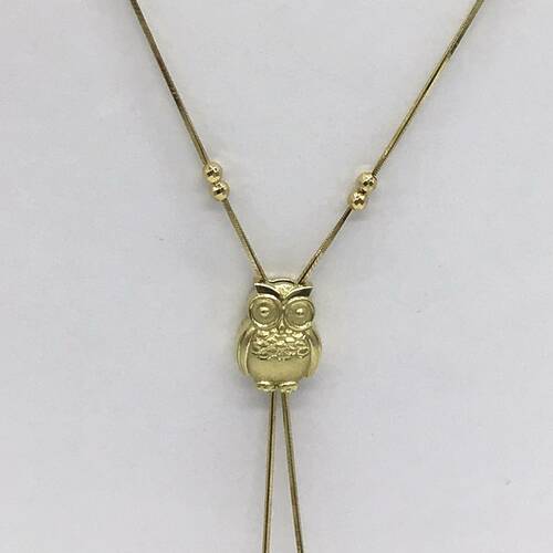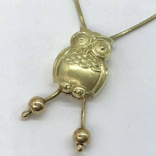 福を呼ぶ縁起の良いフクロウがモチーフのネックレスです。フクロウの位置がスライドで移動できるので、ネックレスの長さが変えられます。