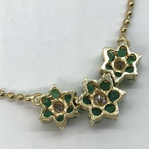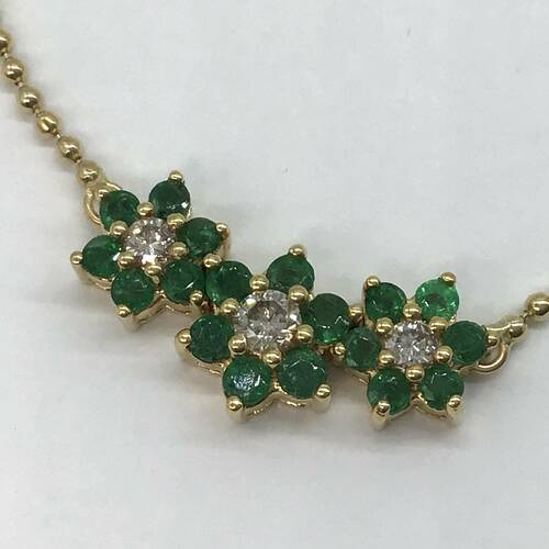 3つのエメラルドの花びらが可愛らしいネックレスです。
