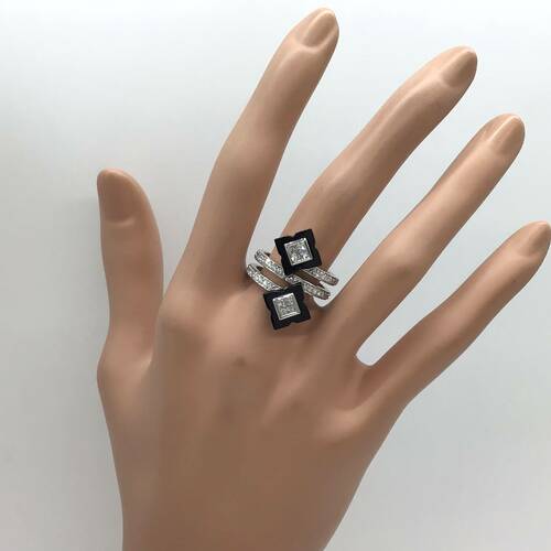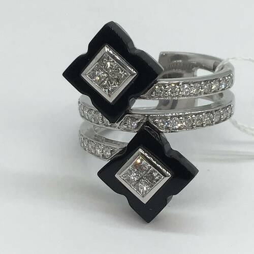 8月誕生石のオニキスは身に着けることでトラブルから身を守ってくれる魔除けの石です。斬新なデザインがおしゃれなリングです。
