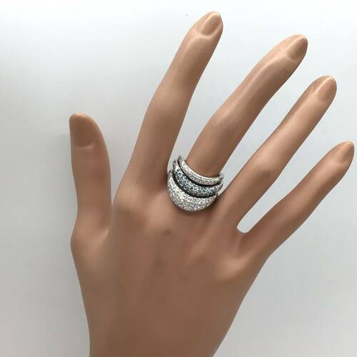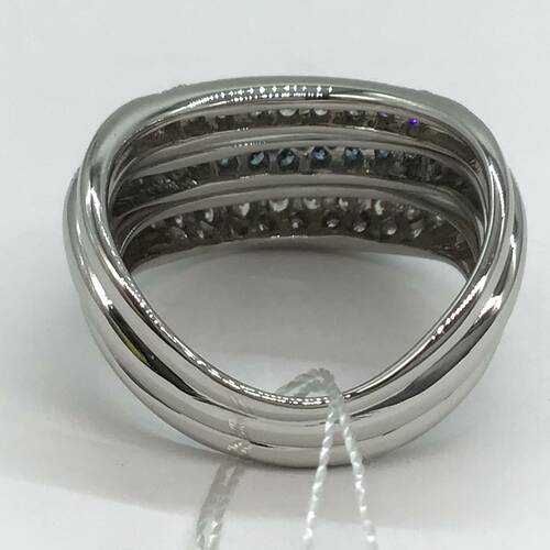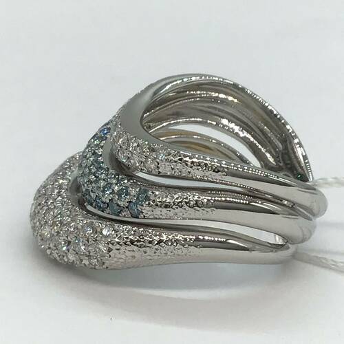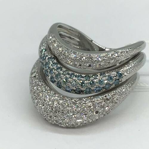 カラーレスとブルーグリーンのダイヤモンドがおしゃれで輝きが豪華なリングです。