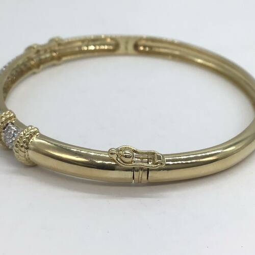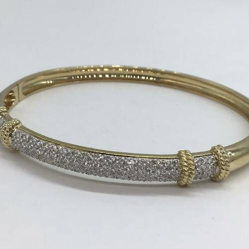 一部がダイヤモンドで敷き詰められた豪華なバングルです。