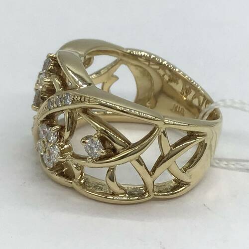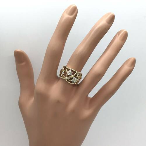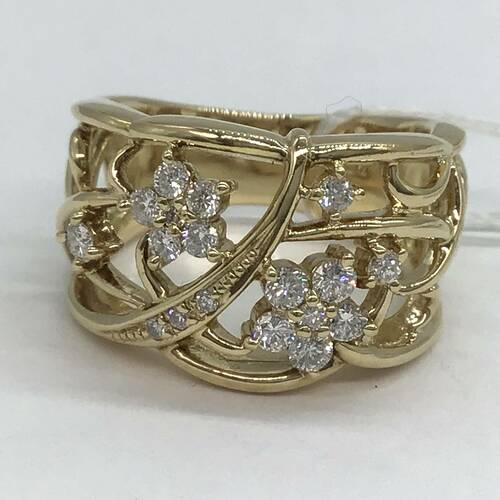 透かし柄に所々にダイヤモンドの可憐な小花が散りばめられた可愛らしいリングです。