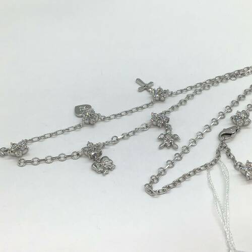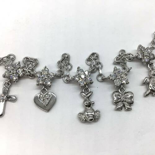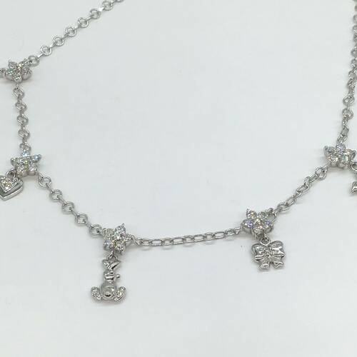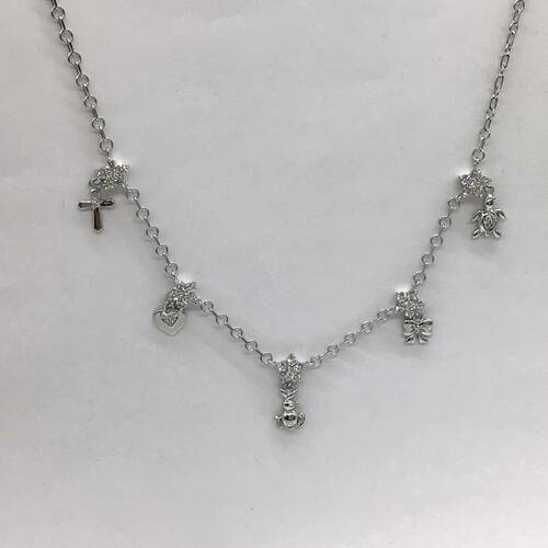 クロス、ハート、うさぎ、リボン、亀のチャームが付いた可愛らしいネックレスです。