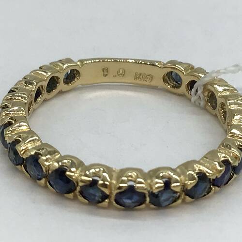 ほぼ全周にサファイアが施されたおしゃれなエタニティリングです。