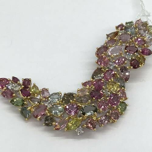 | コメント | 10月誕生石のトルマリンは全ての色があると言われるほど多彩な色を持つ宝石です。 ピンクやオレンジ、グリーンなど色とりどりのトルマリンを施した豪華なブローチです。 お持ちのチェーンを付けてペンダントトップとしても楽しめます。 |