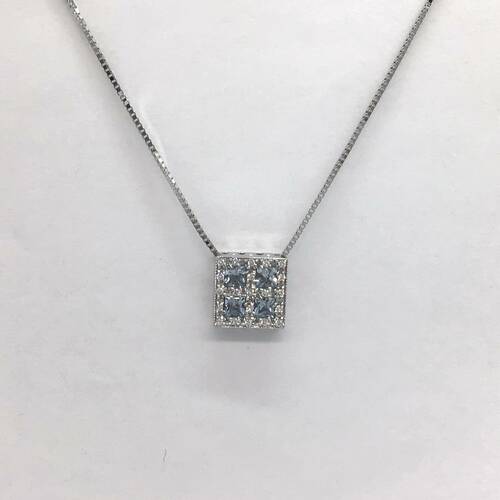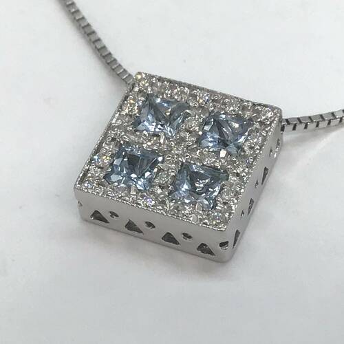K18WGプチネックレス アクアマリン/ダイヤモンド 41CM