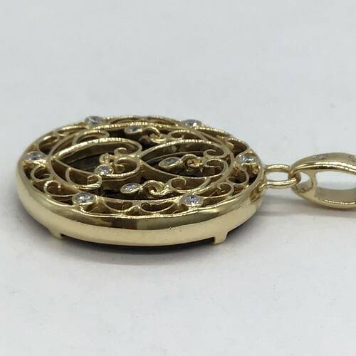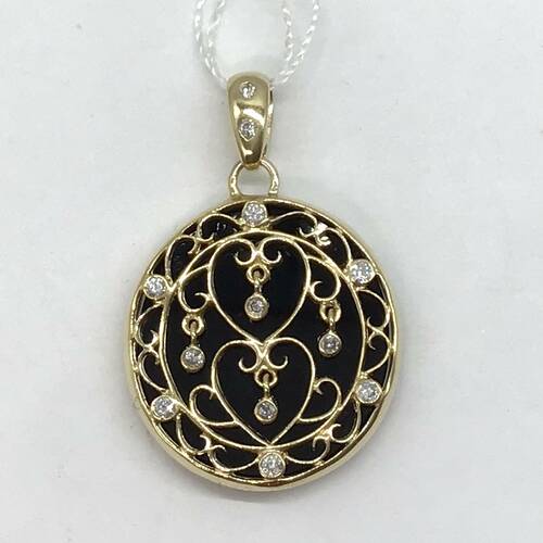 オニキスのブラックにゴールドの透かし&ダイヤモンドの輝きがおしゃれなペンダントトップです。