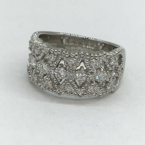 透かし柄にダイヤモンドが施された、輝きが素敵なおしゃれなリングです。