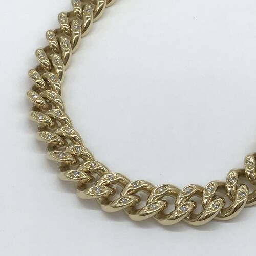 重量67.5gのボリュームのある喜平ブレスレットです。ダイヤモンドの輝きがさらに豪華になっています。
