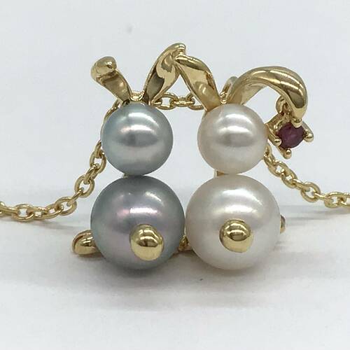 K18プチネックレス パール/ルビー 40CM
