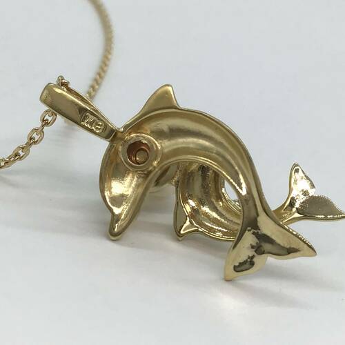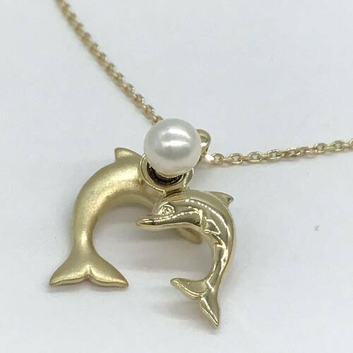 2頭のイルカ親子が可愛らしいネックレスです。イルカは幸運の象徴です。愛と平和、家族や友人との絆、「自分らしく生きる」というメッセージもあります。