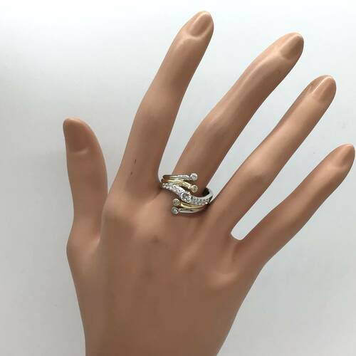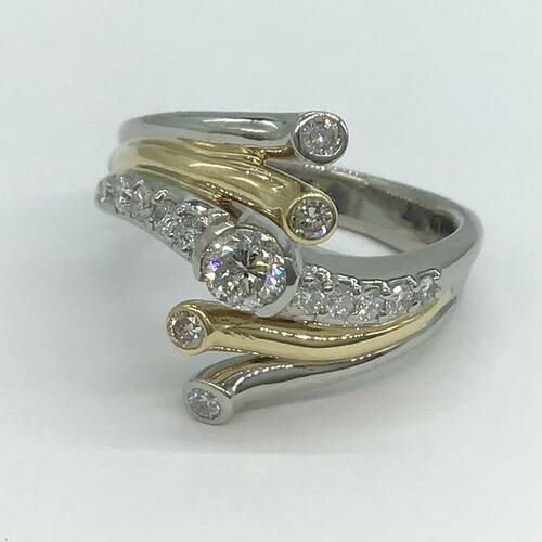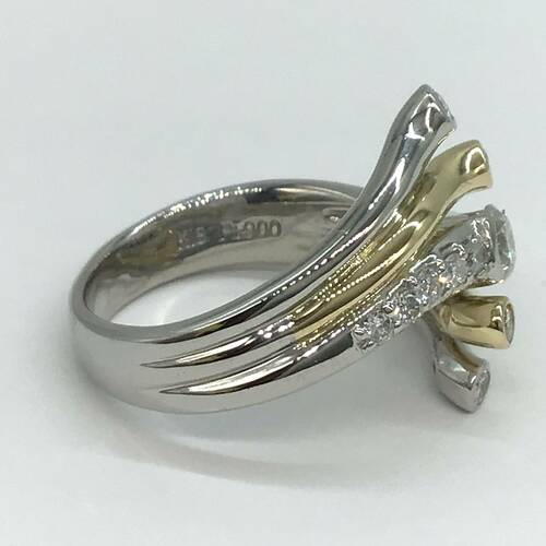 プラチナとゴールド、そしてダイヤモンドの輝きが豪華で素敵なリングです。