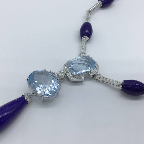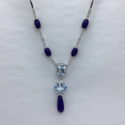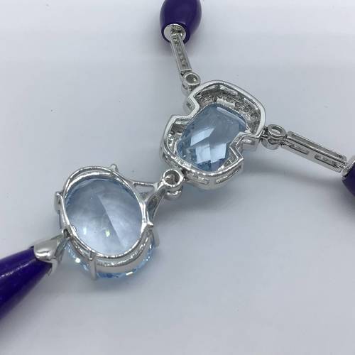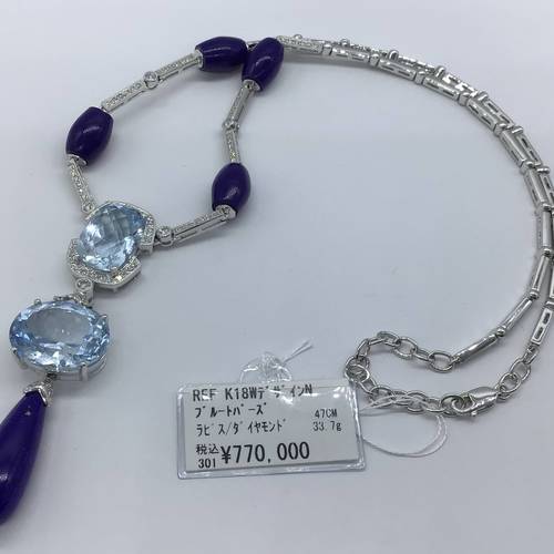 K18Wデザインネックレス ブルートパーズ ラピス/ダイヤモンド 47CM