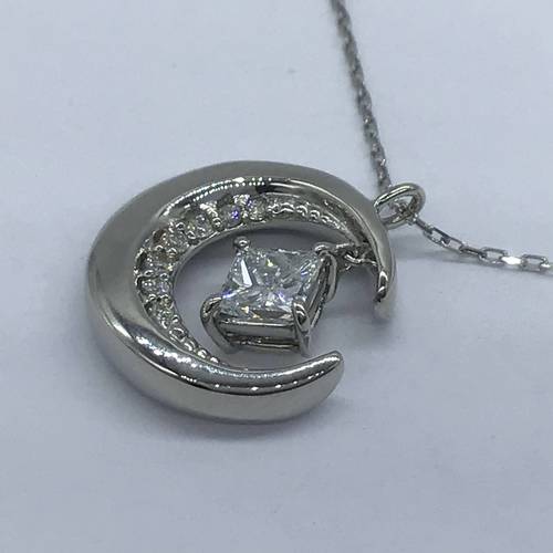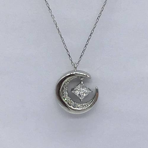 | コメント | 三日月の中に揺れるダイヤモンドの星がとてもおしゃれで可愛らしいデザインです。チェーンの長さも変えられるのでその日の気分で… |