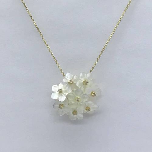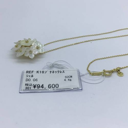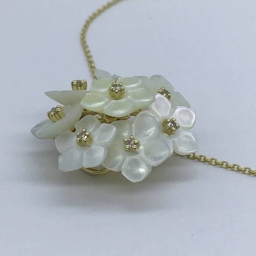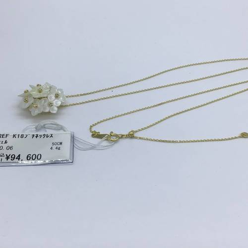 | コメント | シェルでできた花が花束の様なデザインになっています。可憐で優しいネックレスです。 アジャスターで長さ調整が可能です。 |