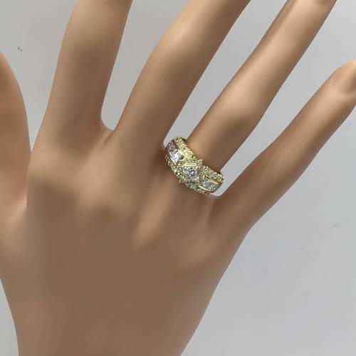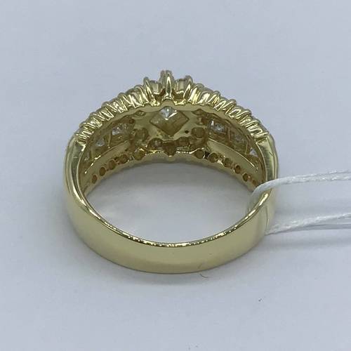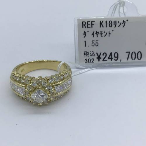 | コメント | 真ん中にスクエアのダイヤモンド、囲む様にダイヤモンドが施され、両サイドにも3段にダイヤモンドが施され、とても豪華なリングです。 |